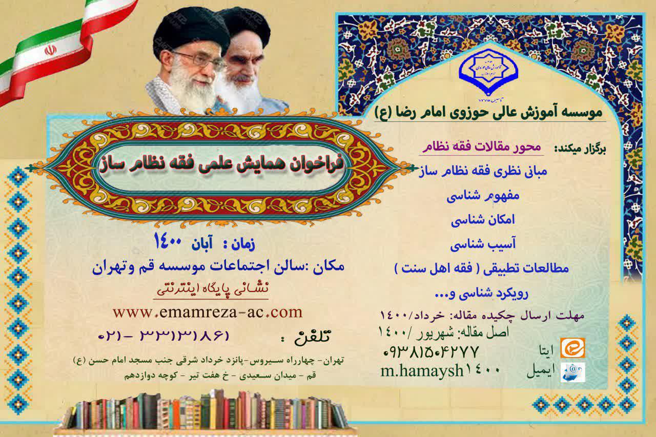 بر پایه این گزارش؛ عناوین و محورهای پیشنهادی مقالات همایش ملی فقه نظام ساز که در مهرماه 1400 برگزار خواهد گردید به شرح ذیل می باشد: